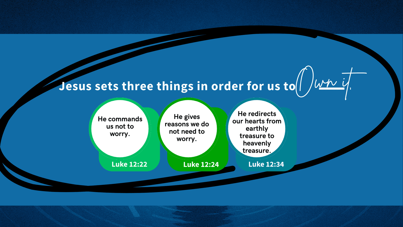22 Then He said to His disciples, “Therefore I say to you,do not worry about your life, what you will eat; nor about the body, what you will put on. 23 Life is more than food, and the body is more than clothing. 24 Consider the ravens, for they neither sow nor reap, which have neither storehouse nor barn; and God feeds them. Of how much more value are you than the birds? 25 And which of you by worrying can add one cubit to his stature? 26 If you then are not able to do the least, why [a]are you anxious for the rest? 27 Consider the lilies, how they grow: they neither toil nor spin; and yet I say to you, even Solomon in all his glory was not [b]arrayed like one of these. 28 If then God so clothes the grass, which today is in the field and tomorrow is thrown into the oven, how much more will He clothe you, O you of little faith?d will go in and out and find pasture.